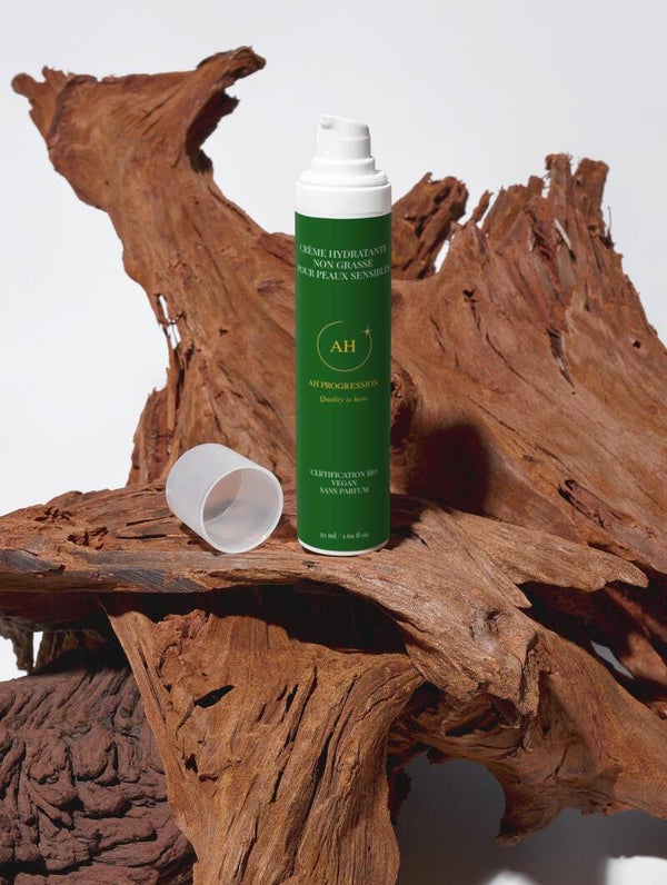 Crème hydratante non grasse pour peaux sensibles, sans parfum, vegan, BIO naturellement by AH PROGRESSION